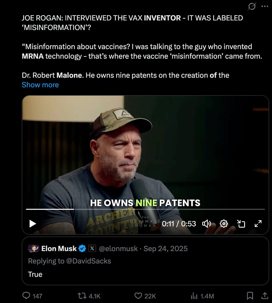 - “Dr. Malone is the inventor of mRNA vaccines, he knows what he’s talking about!”