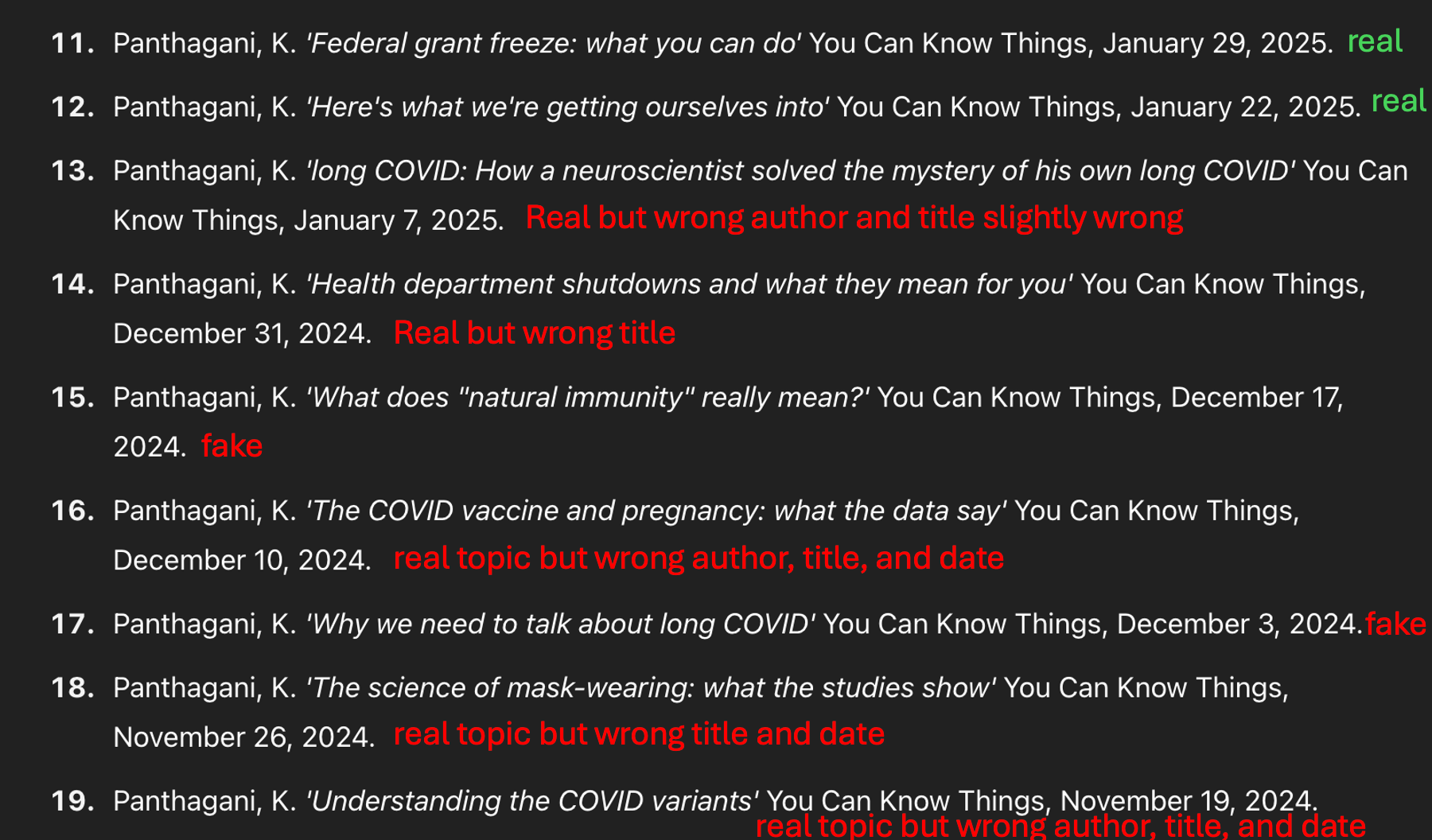 Even simple citation tasks can be a struggle for AI. I recently asked ChatGPT to make a bibliography for this blog, directing it to the page on my website that has the full list of articles. It got the first few citations right, and then stopped. I told it there were more articles please include them, and it started making up plausible-sounding articles that I did not write.