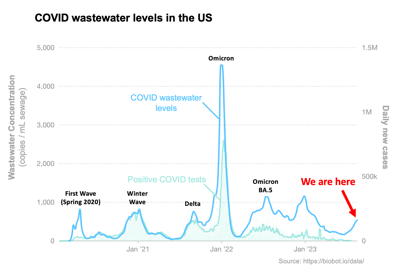 COVID tests aren’t the greatest metric (especially now), and more and more we’re relying on levels of COVID circulating in wastewater to track how it’s spreading in the communities.